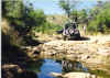 This was the 1st trip where the Jeeps were "Lifted and Locked". Chiva Falls is rated a 3.5 and I had just added the new BFG Mud Terrain's(whew). The adrenaline was high since this was my 1st time on this level of trail and I had the extra challenge of being "unlocked". This means that I had open differentials in my truck and if one tire lost traction the axle disengaged. We made it all the way to the Fall which had only a small trickle then headed back the way we came. There were no major problems though I had a difficult time coming back up "the crack" and managed to scrape the right rear fender a bit on a rock. Gives the truck character. <grin> I also landed 2-3 times on the rear Smittybilt bumper, but it's there to protect the body so I don't mind. Also on this trail run were Jeff in his '95 YJ and Scott in his '93 YJ. Ian, Chris and Kurt were also passengers.